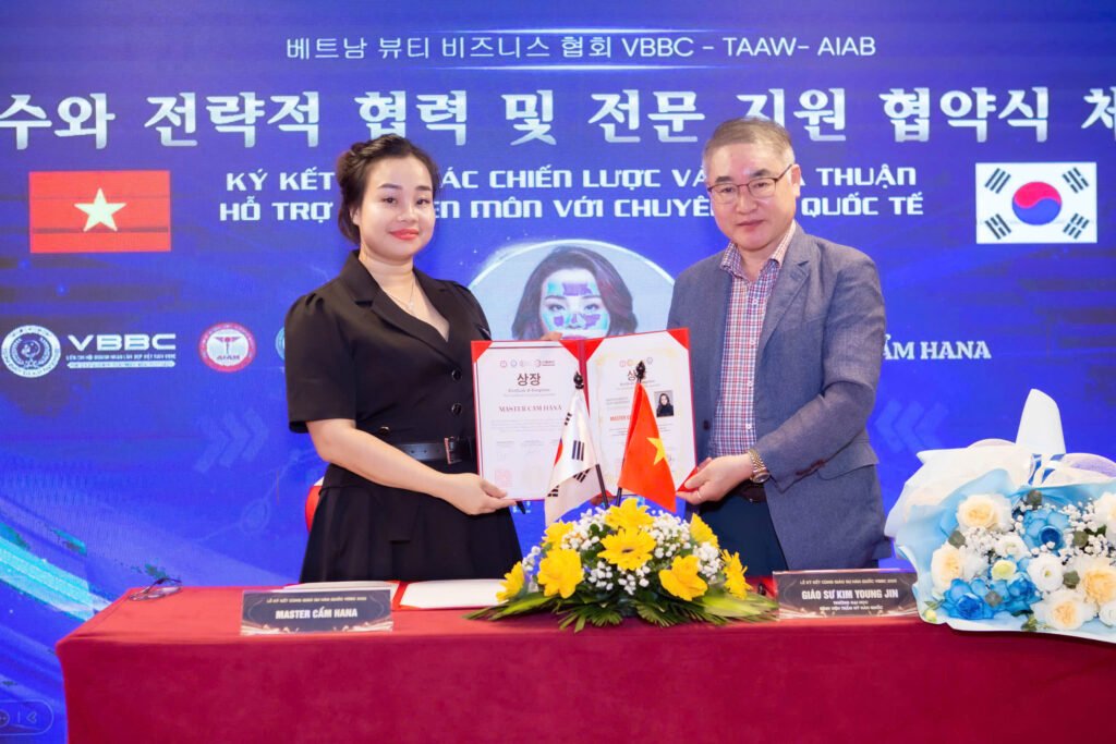 Tại sự kiện, CEO Nguyễn Cẩm đại diện HANA BEAUTY SPA đã ký kết chuyển giao công nghệ thẩm mỹ tiên tiến từ Hàn Quốc, đánh dấu bước ngoặt trong chiến lược nâng cấp toàn diện trải nghiệm khách hàng tại trung tâm.