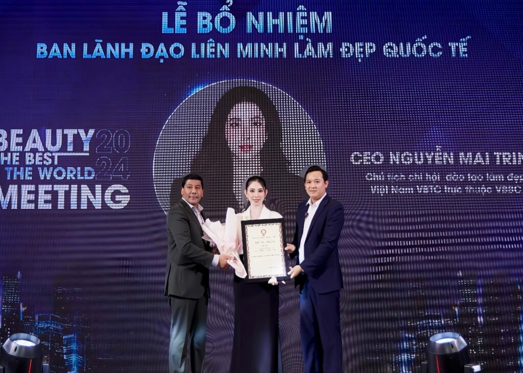 Ngày 18/11/2024, tại Hội nghị Chuyên gia Làm đẹp Quốc tế lần thứ nhất (The Best Beauty Worldwide Expert Meeting) chương trình do liên chi hội doanh nhân làm đep Việt Nam VBBC tổ chức được diễn ra ở Trung tâm Hội nghị 5 sao Capella Phú Nhuận, TP.HCM, CEO Nguyễn Mai Trinh đã chính thức được bổ nhiệm làm Tân Chủ tịch Chi Hội Đào Tạo Ngành Làm Đẹp Việt Nam (VietNam Beauty Training Chapter – VBTC).